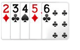 STRAIGHT : kombinasi kartu ini sama dengan STRAIGHT FLUSH, bedanya kalau STRAIGHT tidak memandang bunga, bunganya boleh bebas , misal : 4 ♠ �C 5 �C 6 �C 7 ♣ �C 8 atau 10 �C J ♣ �C Q ♠ �C K - As ♣